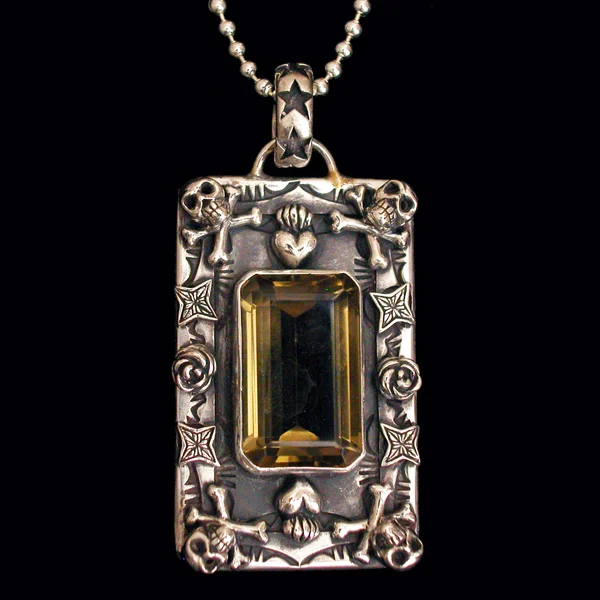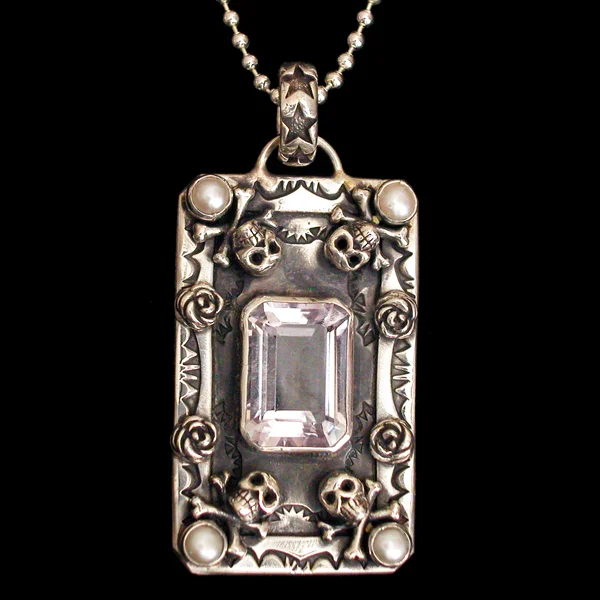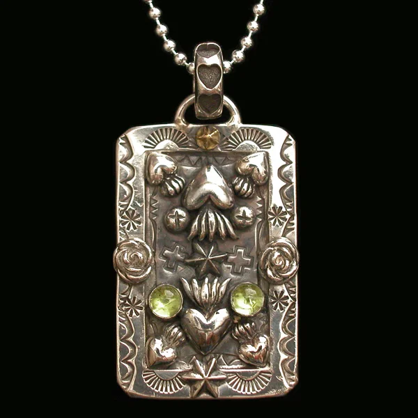 This is our collection of "larger" dog tags (pretty standard size), that features our signature sterling icons, 18k gold accents and a large array of semi-precious stones and pearls.